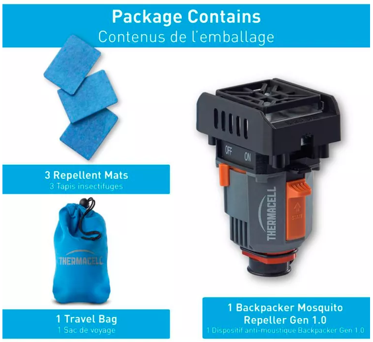 - Thermacell Backpacker Mosquito Repeller provides zone protection for you and your entire campsite