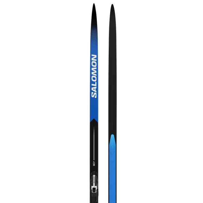 Salomon's RC7 eSKIN skis let you experience classic performance without the challenge of daily waxing. The eSKINGRIP+ insert delivers precise, secure grip and silent, fast gliding to skiers who demand performance in various snow conditions. The skis are delivered premounted with a Shift binding.